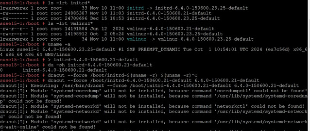 suse15-1:/boot # dracut --force /boot/initrd-6.4.0-150600.21-default 6.4.0-150600.21-default